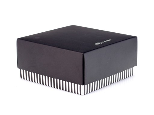Pudełko wykonane z ozdobnej tektury z nadrukiem firmowym AM LEATHER.