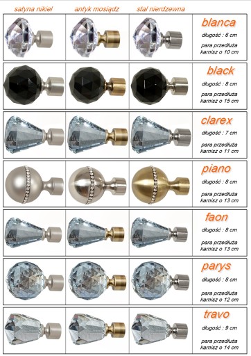 Elementy składowe karnisza to (wszystko metal) :