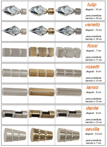 -na długość całego karnisza składa się długość rury podana wyżej, oraz suma długości zakończeń podana poniżej;