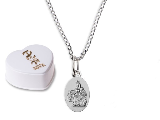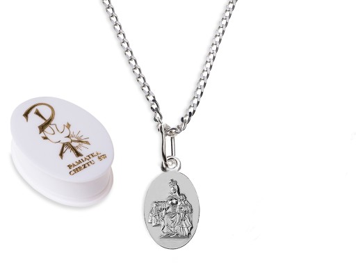 Tradycyjny komplet, na który składa się srebrny łańcuszek i medalik, to idealny zestaw na Pierwszą Komunię Świętą czy Chrzest zarówno dla chłopców, jak i dziewcząt. Komplet wykonany jest ze srebra najwyższej próby 925
