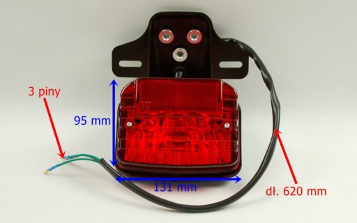 - długość całkowita przewodów lampy tylnej: 620 mm
