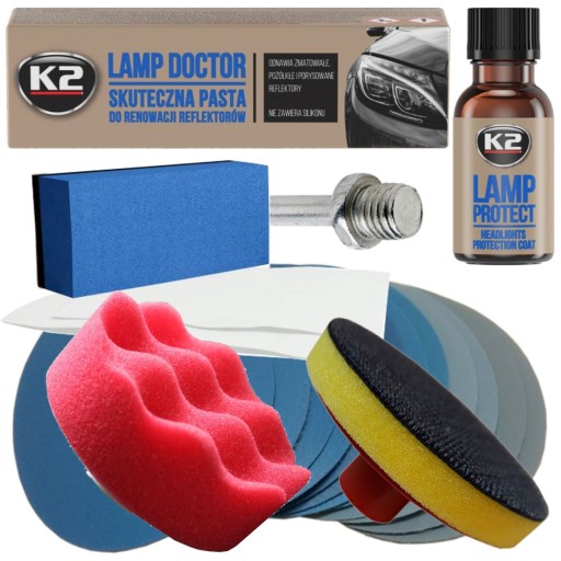 Zestaw klasy Premium. Zawiera tylko markowe, najwyższej jakości komponenty. Dedykowana pasta polerska K2 Lamp Doctor oraz powłoka ochronna K2 Lamp Protect gwarantuje doskonały efekt końcowy i zabezpieczenie lamp przed ponownym zniszczeniem na długi okres czasu.