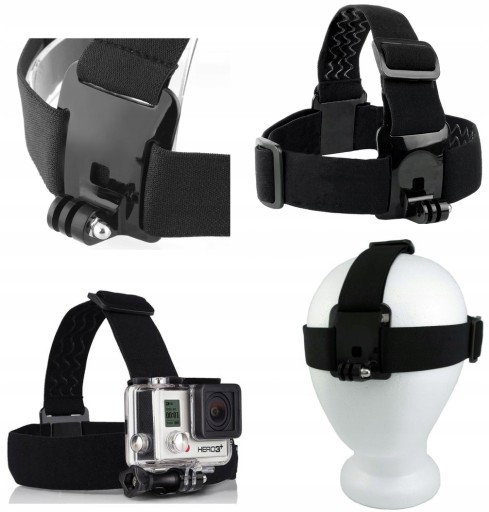 Uchwyt na kask / głowę umożliwia stabilne zamocowanie kamery na kasku, czapce lub bezpośrednio na głowie.