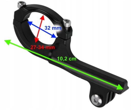Wysokiej jakości uchwyt aluminiowy o długości 10,2 cm, pasuje do wszystkich najbardziej popularnych rowerów - do profili okrągłych o średnicy od 27 do 32 mm - lub przedmiotach podłużnych o przekroju aż do 34 mm.