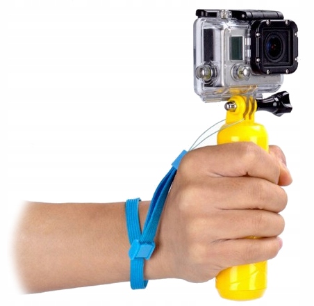 Długa na 13 cm rękojeść pływaka pasuje idealnie do dłoni użytkownika, stanowiąc z jednej strony doskonały uchwyt podczas użytkowania, z drugiej będąc pewnym zabezpieczeniem w przypadku wypadnięcia kamery do wody.