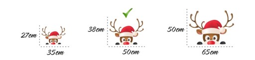 Na naszych pozostałych aukcjach posiadamy inne rozmiary naklejki z reniferem: 35x27cm, 50x38cm, 65x50cm.