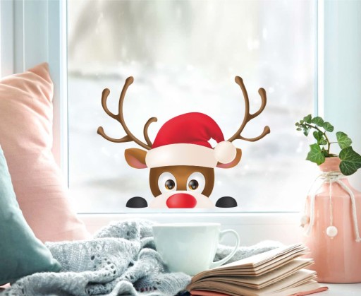 RENIFER Naklejka świąteczna na szybę OKNO 50x38cm