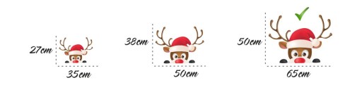 Na naszych pozostałych aukcjach posiadamy inne rozmiary naklejki z reniferem: 35x27cm, 50x38cm, 65x50cm.