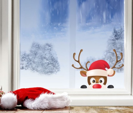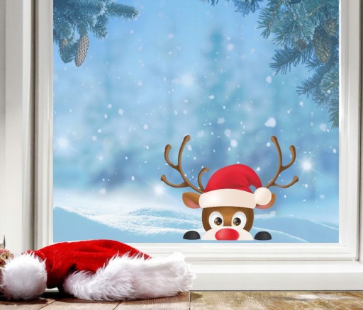 Naklejka z reniferem na ścianę szybę OKNO 65x50cm