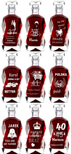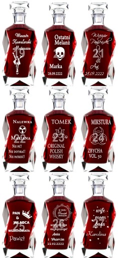 Masz problem z podjęciem decyzji jaki prezent wybrać na podziękowania dla rodziców? Idziesz na rodzinną imprezę i nie wiesz co kupić jubilatowi / solenizantowi? Kup tą karafkę! Jest to piękny produkt, ręcznie formowany, co sprawia że każdy jest niepowtarzalny. Produkcja polska. Ponadto jest grawerowana na wysokiej jakości ploterze laserowym, a grawer jest ręcznie i bardzo dokładnie wypełniany przez rzemieślnika specjalną farbą. Złocenie / srebrzenie mieni się pod światło, co daje niesamowity efekt. Obdarowana osoba widząc tak dobrze wykonany prezent na pewno będzie zachwycona :)
