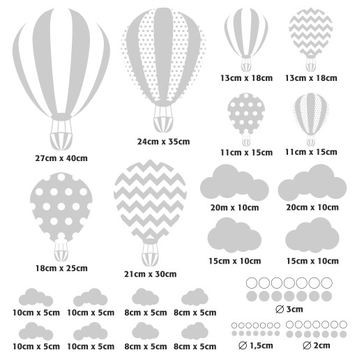 Na tej aukcji kupisz zestaw naklejek: BALONY, CHMURKI, KROPKI.
