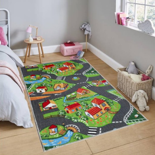 Praktyczna mata dywan do zabawy. Plac zabaw do jazdy autkami. Wytrzymała odporna na zabrudzenia struktura wykładziny a co najważniejsze idealnie płaska czyli układanie klocków nie sprawi żadnego trudu. Wykładzina przyjazna dla dzieci. Uczy i bawi !. Polecam z czystym sumieniem !.