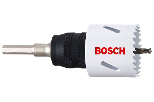 Aby zamocować piłę otwornice Progressor for Wood and Metal firmy BOSCH w uchwycie wiertarskim należy zastosować adapter Power Change BOSCH wraz ze specjalnym wiertłem pilotującym.