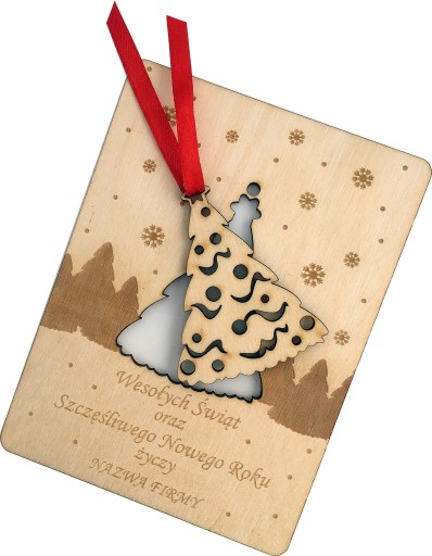 Деревянная РОЖДЕСТВЕНСКАЯ ОТКРЫТКА с елочным УКРАШЕНИЕМ №2