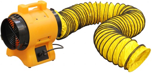 Przepływ powietrza w tych dmuchawach jest wymuszony wentylatorem osiowym. Powietrze zasysane jest wlotem z przodu urządzenia, a wywiew jest w tylnej części urządzenia. Do wlotu lub wylotu można podłączyć opcjonalny giętki przewód rozprowadzający powietrze. Możliwe do zastosowania przewody powietrza są te same jak w przypadku dmuchaw plastikowych.