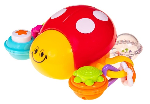 Dogonię cię biedroneczko! Takie wyzwanie może rzucić tylko ruchliwy maluch. Kolorowa biedronka Smily Play to wesoła zabawka dla dzieciaków w wieku powyżej 6 miesiąca życia. Biedroneczka ucieka, kiedy dziecko naciśnie na jej grzbiet – specjalny mechanizm wprawia ją w ruch. Dodatkowo zabawka ma grzechoczące elementy, a przycisk funkcyjny uruchamia radosne melodie. Maluch, próbując nadążyć za biedroneczką, doskonali swoje umiejętności raczkowania i chodzenia. Każda z 6 nóg biedronki posiada inną zabawkę, dzięki czemu rozwija także zdolności manualne, słuchowe i poznawcze dziecka.