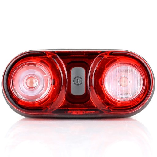 Wysokiej jakości tylna lampa rowerowa o oryginalnym kształcie z bardzo jasnym światłem LED. Wyposażona w dwie czerwone diody o mocy 0,5 W oraz nowoczesny system soczewkowy, dzięki czemu generuje światło widoczne z odległości 1km. Obie diody są przesłonięte szybką rozpraszającą światło, co wzmaga widoczność z boku do 180 stopni. Mała, lekka z łatwym do montażu uchwytem. Zasilana popularnymi bateriami R03/AAA dołączonymi do zestawu. Lampka posiada 3 tryby świecenia.