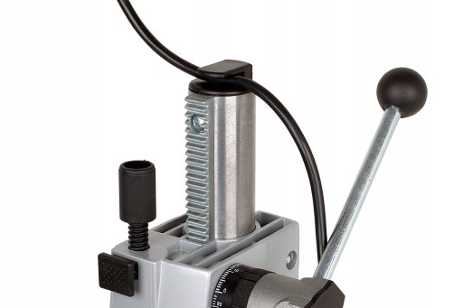 Do wyjątkowo dokładnego wiercenia w elementach płaskich, okrągłych oraz listwach. Stabilna, 40 mm, okrągła kolumna z 340 mm listwą zębatą. Wiercenie bez efektu ”skręcania”.