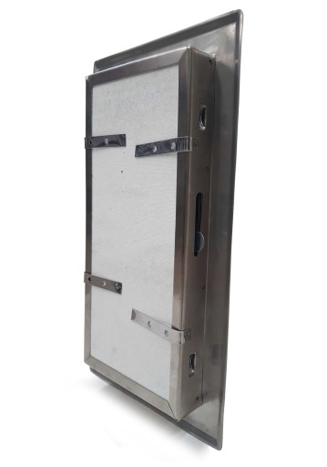 Drzwiczki kominowe wykonane są z blachy nierdzewnej szlifowanej, która gwarantuje odporność korozyjną i bardzo długą żywotność.