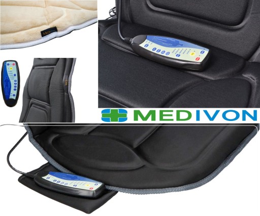 Nowa mata masująco - rozgrzewająca masażer pleców MEDIVON CF2602 UWAGA ! Dostępny wyłącznie kolor beżowy , Pilot przewodowy , Zasilacz sieciowy 230V i samochodowy 12V z wtykiem do gniazda zapalniczki , Instrukcja obsługi w języku Polskim , Oryginalne opakowanie MEDIVON EDITION