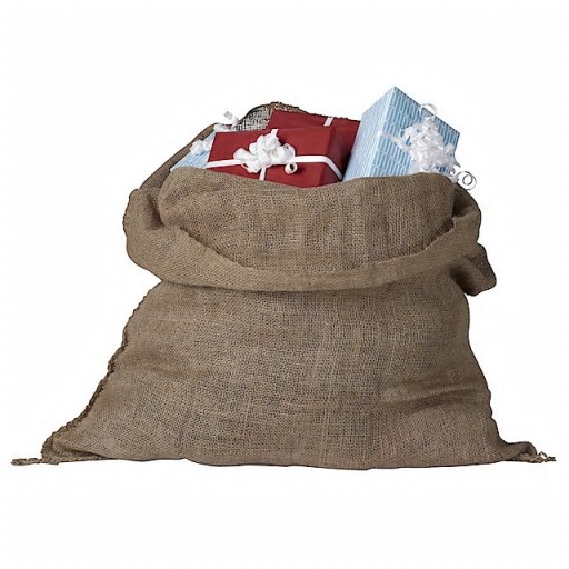 3. Wielki jutowy worek na prezenty z czerwoną tasiemką do wiązania