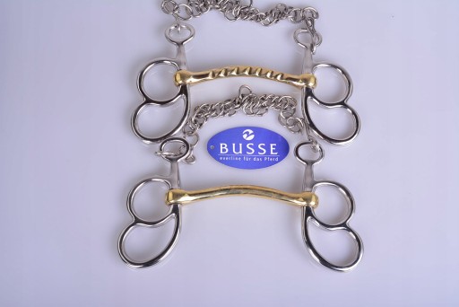 MUNSZTUK ZAPRZĘGOWY ŁAMANY 13,5CM. WYKONANY PRZEZ RENOMOWANO NIEMIECKĄ FIRMĘ BUSSE. MUNSZTUK WYKONANE Z WYSOKIEJ JAKOŚCI STALI NIERDZEWNEJ.KÓŁKA UMOŻLIWIAJĄ ZAPIĘCIE LEJCA NA RÓŻNEJ WYSOKOŚCI. ŚCIĘGIERZ POWLEKANY MIEDZIĄ KTÓRA ZACHĘCA KONIA DO ŻUCIA I UŁATWIA AKCEPTACJE WĘDZIDŁA .POLECAM