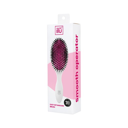 Owalna szczotka do rozczesywania włosów ilū Smooth Operator została wyprodukowana z tworzywa bardzo wysokiej jakości i zaprojektowana tak, by nie niszczyć włosów podczas rozczesywania. Syntetyczne ząbki i włosie są delikatne nawet dla bardzo splątanych kosmyków i zapobiegają ich elektryzowaniu. Szczotka doskonale sprawdza się podczas czesania zarówno mokrych, jak i suchych włosów.