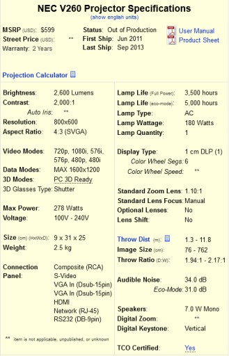 ПРОЕКТОР NEC V260 2600 ANSI DLP 2000:1