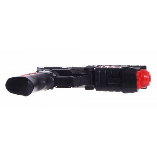 Pistolet w kolorze czarnym z czerwonymi wstawkami przeznaczony dostrzelania kulkami żelowymi. Do zestawu zostały dołączone kulki żelowe,które należy wyjąć z saszetki, wsypać do jakiegoś pojemnika i zalaćwodą i pozostawić na 3-5h do namoknięcia. Dodatkowo do zestawu zostałydołączone dwie strzałki, którymi równiez można strzelać z pistoletuw razie braku kulek.Wymiar pistoletu: 20 x 15 x 3,5 cm