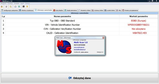 5. Odczyt informacji o pojeździe VIN, CVN, CALID