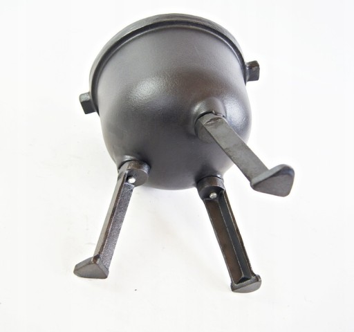Kociołek 4l został wykonany z żeliwa odpornego na wysokie temperatury oraz ścieranie. Środek kociołka został pokryty grubą warstwą emalii. Kociołek posiada odkręcane nóżki dzięki czemu można go postawić na paleniskach czy piecach, kociołek można postawić lub powiesić nad ogniem za pomocą specjalnego uchwytu. Kociołek jest nowy, nieużywany, oryginalnie zapakowany.