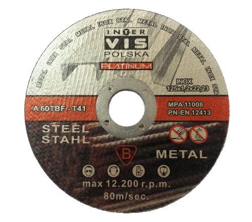 Tarcza do cięcia stali płaska typu 41A wykonana jest z elektrokorundu. Przeznaczona jest do przecinania: stali twardych i miękkich, żeliwa, staliwa, aluminium w postaci prętów, kształtowników, rur, płyt, cienkich profili i blach, oraz do cięcia poprzecznego sztab metalowych i drutów.