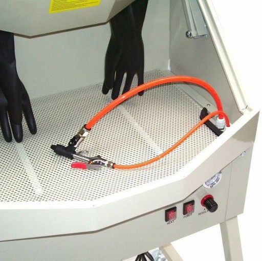 Myjka jest wyposażona w pistolet dwu funkcyjny z którego wydobywać się może samo powietrze lub powietrze z środkiem myjącym. Dzięki temu umyty przedmiot można osuszyć sprężonym powietrzem.