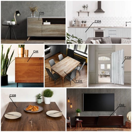 Okleiny drewnopodobne (grubość od 120 do 150 mikrometrów):