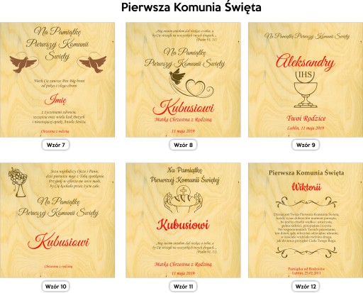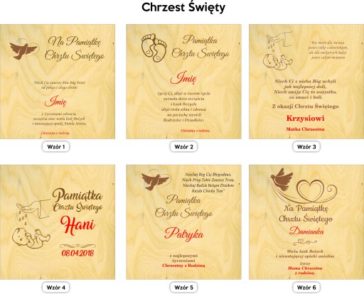 czerwone elementy na wzorach przedstawiają miejsca, które są personalizowane, otrzymują Państwo na produkcie kolor naturalnego graweru. Do każdego wzoru możemy dodać datę.