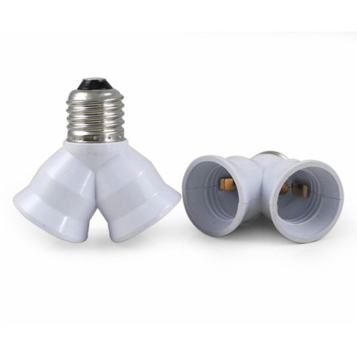 Rozgałęźnik pozwala na wkręcenie 2 żarówek tradycyjnych, energooszczędnych lub ledowych do jednej oprawki z gwintem E27