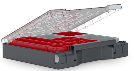 Walizka asortymentowa to idealne rozwiązanie do przechowywania i sortowania drobnych części. Pokrywa łożyskowana sprężynowo, która jest automatycznie i bezpiecznie blokowana przez przyciskanie wieka do dołu. Poszczególne przegrody są w 100% szczelne i nic nie miesza się ze sobą.