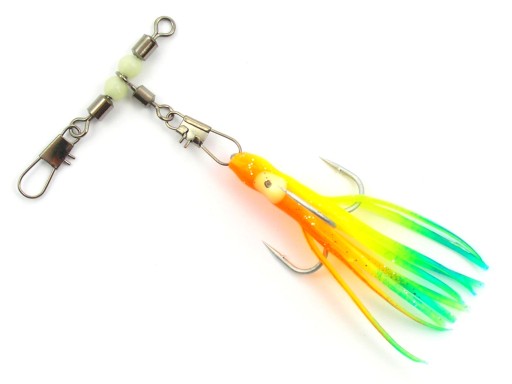 Dopalacz uzbrojony w kotwicę Nr.1/0 i wabik w kształcie ośmiorniczki z oczami fluorescencyjnymi o długości 5,5 cm.