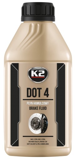 Płyn hamulcowy DOT 4 posiada doskonałe parametry reologiczne pozwalające na stosowanie w bardzo niskich temperaturach. Jest neutralny dla uszczelnień i stopów metali stosowanych w układzie hamulcowym oraz chroni go przed korozją. Płyn hamulcowy K2 DOT 4 posiada temperaturę wrzenia przekraczającą 230 st. C, dzięki czemu dłużej zachowuje on swoje właściwości. Produkt jest w pełni mieszalny z innymi płynami klasy DOT.
