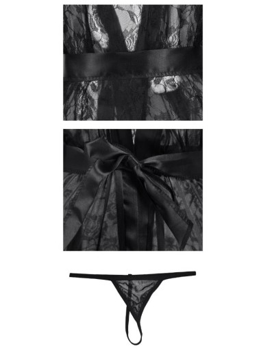 ЧЕРНЫЙ СЕКСУАЛЬНЫЙ АТЛАСНЫЙ КРУЖЕВНОЙ ХАЛАТ, СВОБОДНЫЕ СТРИНГИ