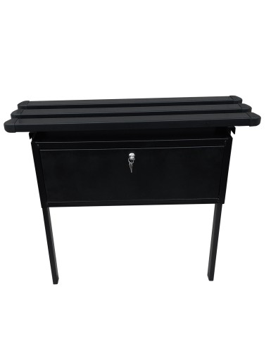 Skrzynka znajdująca się pod siedziskiem również jest metalowa oraz malowana metodą proszkową.Zamykana jest na kluczyk.