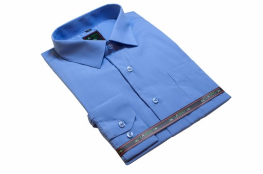 Koszula męska z długim rękawem o prostym, klasycznym kroju regular, bez taliowania i zwężania w pasie. Materiał z jakiego wykonano koszule stanowi mieszankę bawełny i poliestru dzięki czemu koszula dobrze się prasuje, jest miła w dotyku i łatwo się pierze. Koszule tego producenta mają bardzo dobry stosunek jakości do ceny.