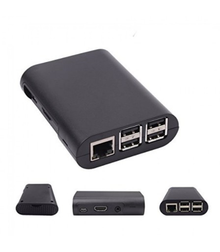 W zestawie oprócz układu Raspberry znajduję się: zasilacz 5V 3A, obudowa czarna półokrągła oraz radiatorki aluminiowej do chłodzenia chipsetów