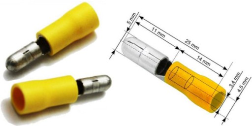 - KONEKTOR MĘSKI IZOLOWANY ŻÓŁTY - 10 szt