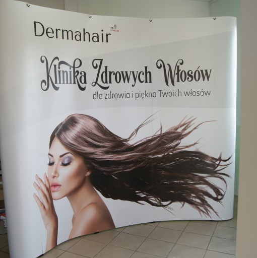 - składaną ściankę reklamową prostą o wymiarze 275 cm szerokości i 230 cm wysokości, 75 cm głębokość. Wykonana jest z aluminium anodowanego (jest odporne na korozję) i tworzywa sztucznego.
