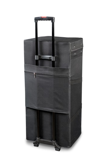 Ścianka po złożeniu i spakowaniu do kufta jest prosta w transporcie. Ma wymiar gł. 45 x szer. 45 x wys. 90 cm i mieści się w bagażniku samochodu osobowego.