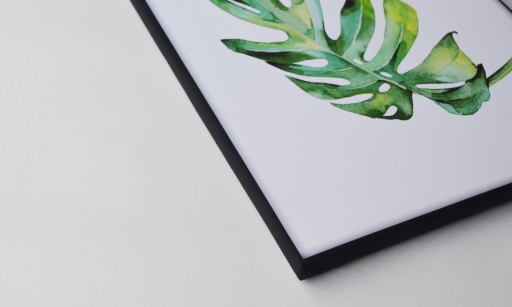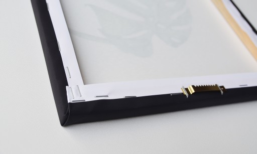 Bok obrazu jest zadrukowany w czarnym kolorze co tworzy efekt czarnej ramki ( szerokość z przodu obrazu ok. 5 mm ).