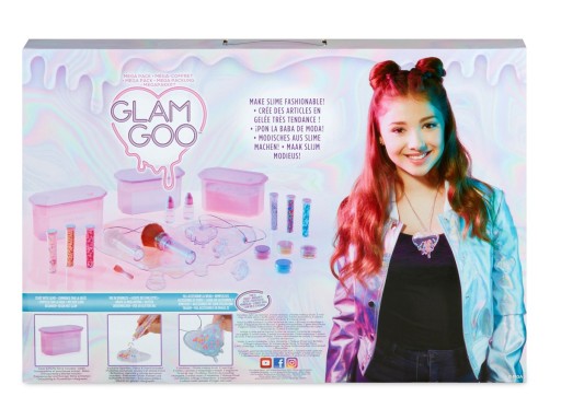 Stwórz różnorodne, różnokolorowe, świecące i mieniące się slime Glam Goo!, a następnie umieść i noś w swoich modnych akcesoriach, które dołączone są do zestawu. Zacznij od Glam Goo - to przezroczysty slime, który stworzony został z miłością. Następnie możesz go ozdabiać na wszystkie sposoby, na jakie tylko chcesz - dodatkami, które również znajdują się w zestawie MEGA. Co powiesz na ozdobę z "życzeń syrenek"? Zmieszaj to ze sobą i gotowe! Możesz albo się odstresować, bawiąc się "glutem", albo możesz nim ozdobić akcesoria, które zostały umieszczone w mega zestawie Glam Goo. Twój slime zawsze będzie niepowtarzalny i unikalny, dzięki ilości ozdób i kolorów, które oferuje zestaw! Co z nim zrobisz, jak ozdobisz - wszystko zależy tylko od Ciebie!