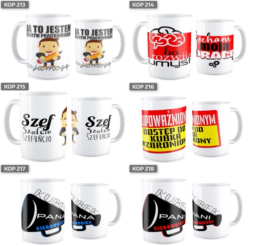 2. W wiadomości do sprzedającego napisz nam numery wzorów (znajdują się powyżej każdej z prezentowanych grafik) kubków jakie chcesz otrzymać.