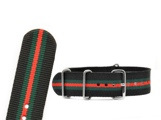 Pasek typu Nato wykonany jest z wysokiej jakości nylonu dzięki czemu idealnie układa się na nadgarstku. Pasek jest wodoodporny i nadaje się do pływania. Klamry wykonane są z nierdzewnej stali. Dzięki swojej bogatej kolorystyce paski z serii Nato Nylon zadowolą nawet najbardziej wymagających użytkowników oraz nadadzą nowy charakter każdemu zegarkowi. Paski Nato występują na naszych aukcjach w rozmiarach 16, 18, 20, 22 , 24 MM .